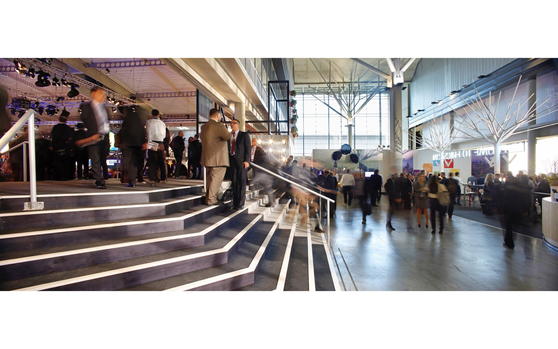 As part of a design team, design development, master planning and detail drawing and on-site delivery for the 6000 square metre exhibition stand at MWC 2014. As with last year, live event with projection, lighting and staging plus a large scenic areas and more formal exhibition space.