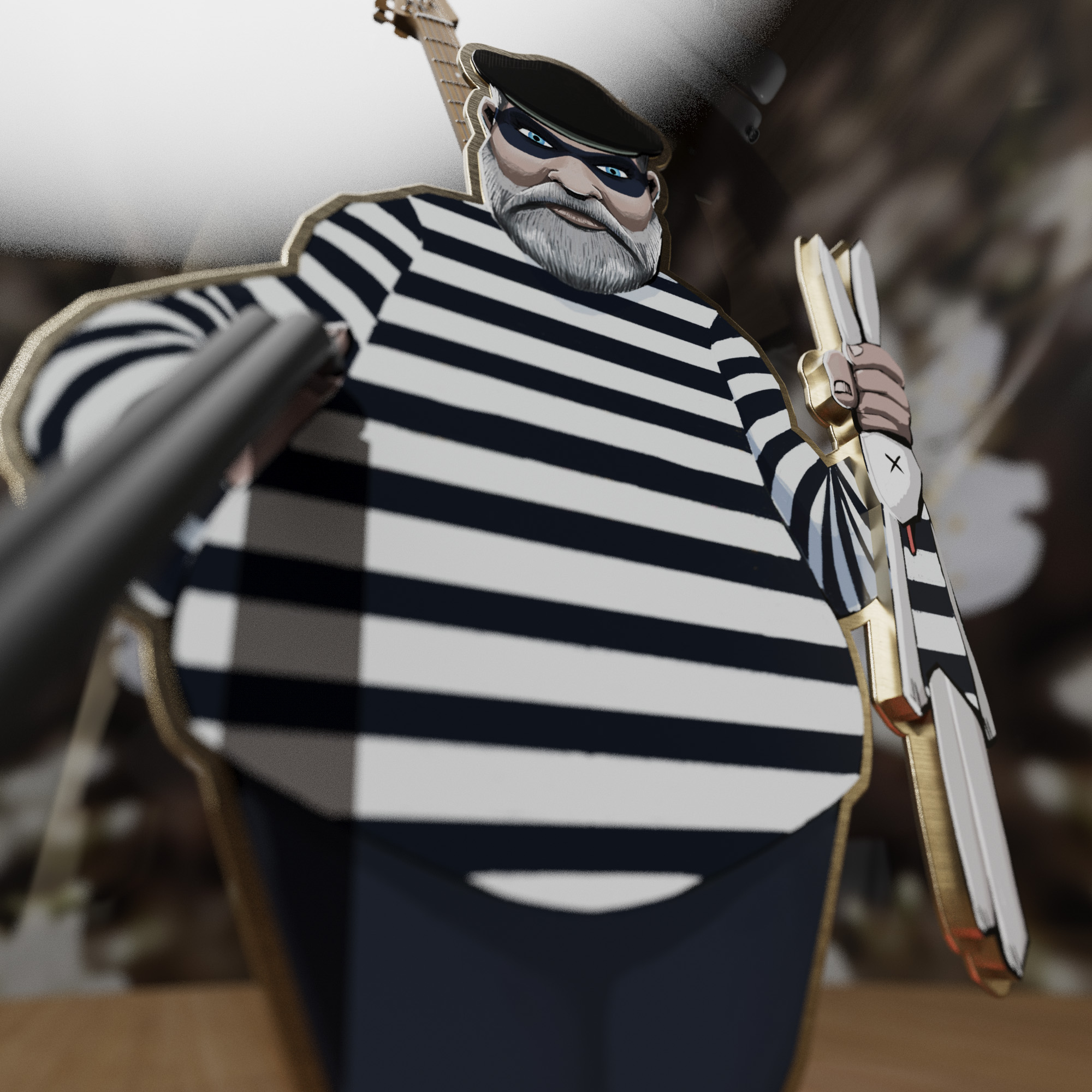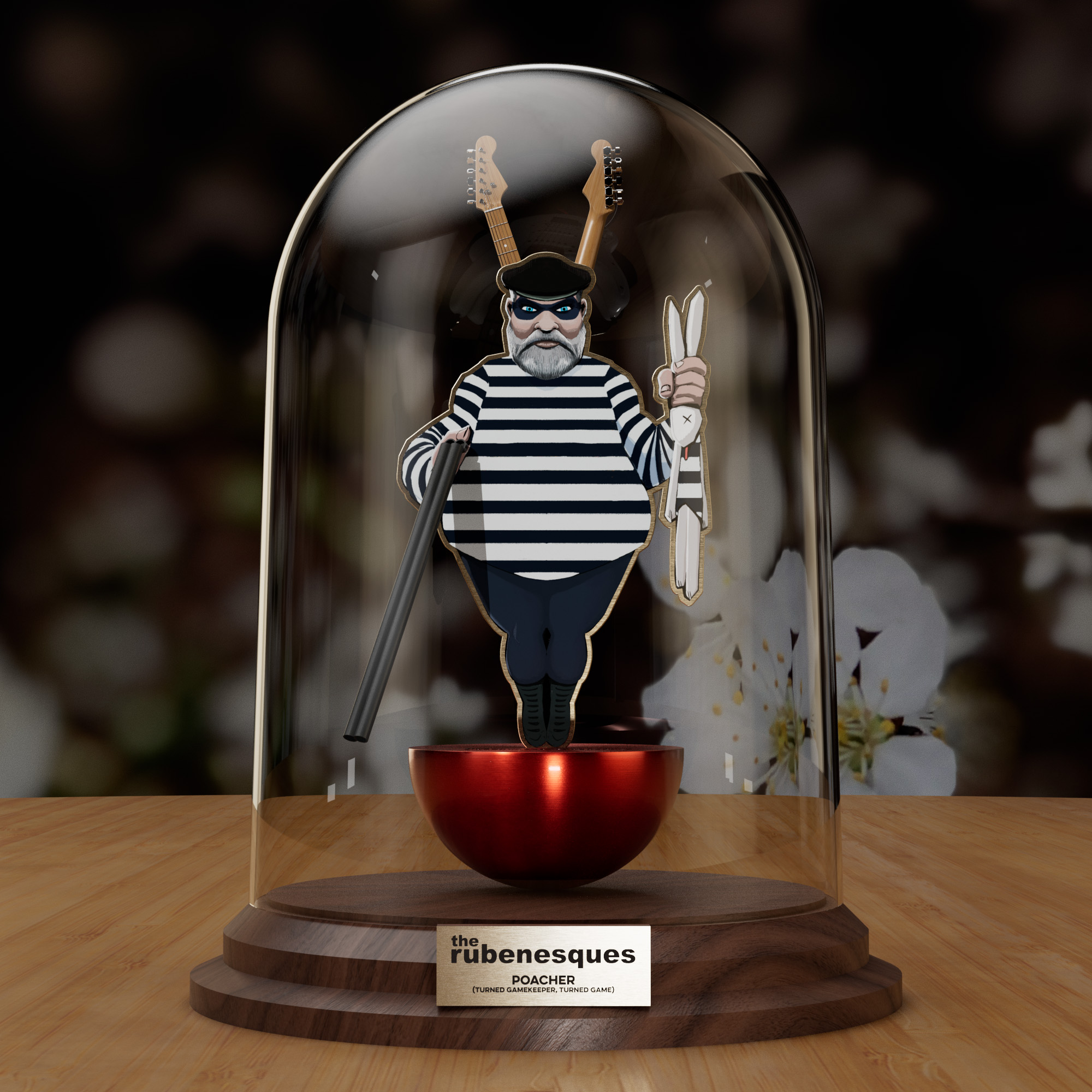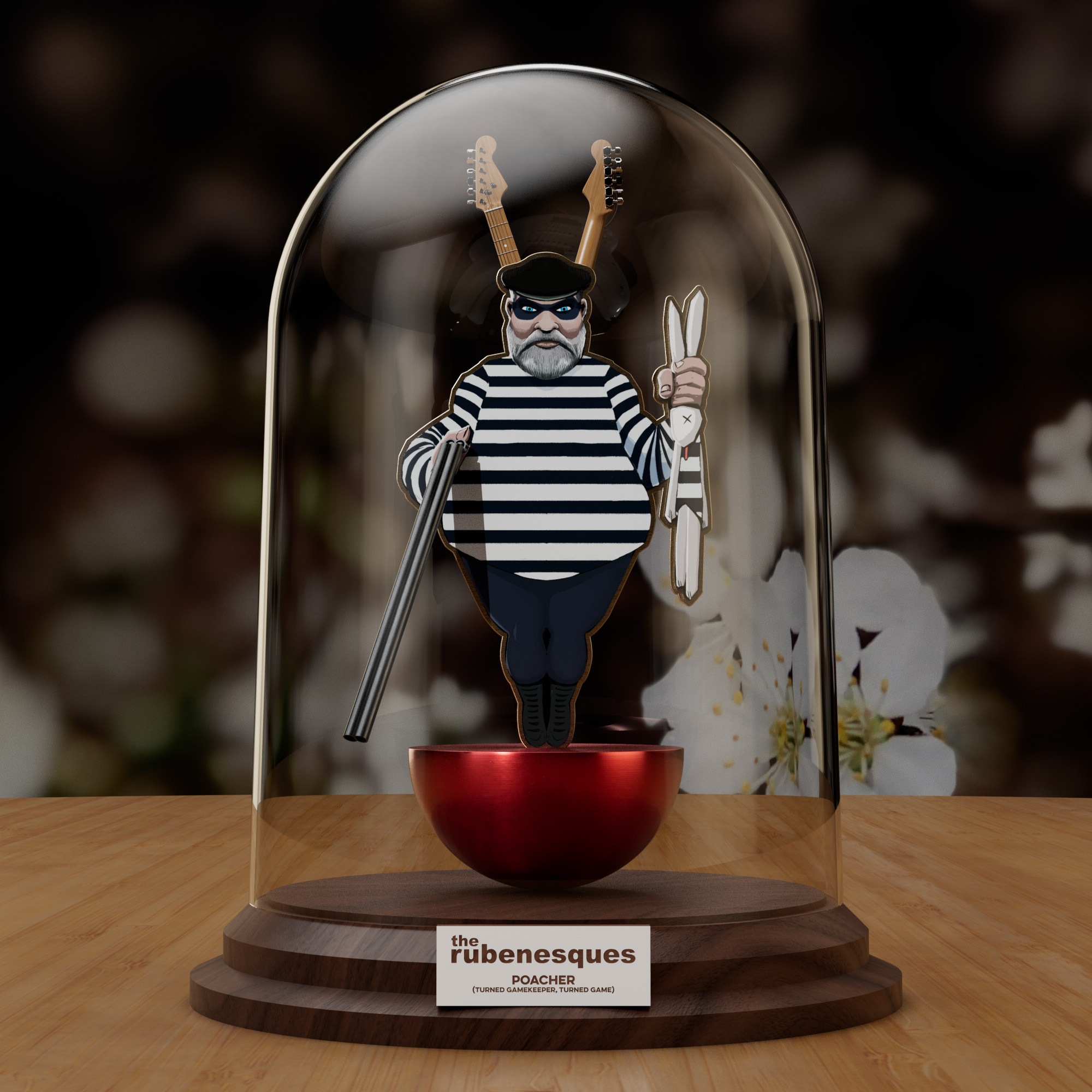 Rendered product shot of an illustrated character in a bell jar.